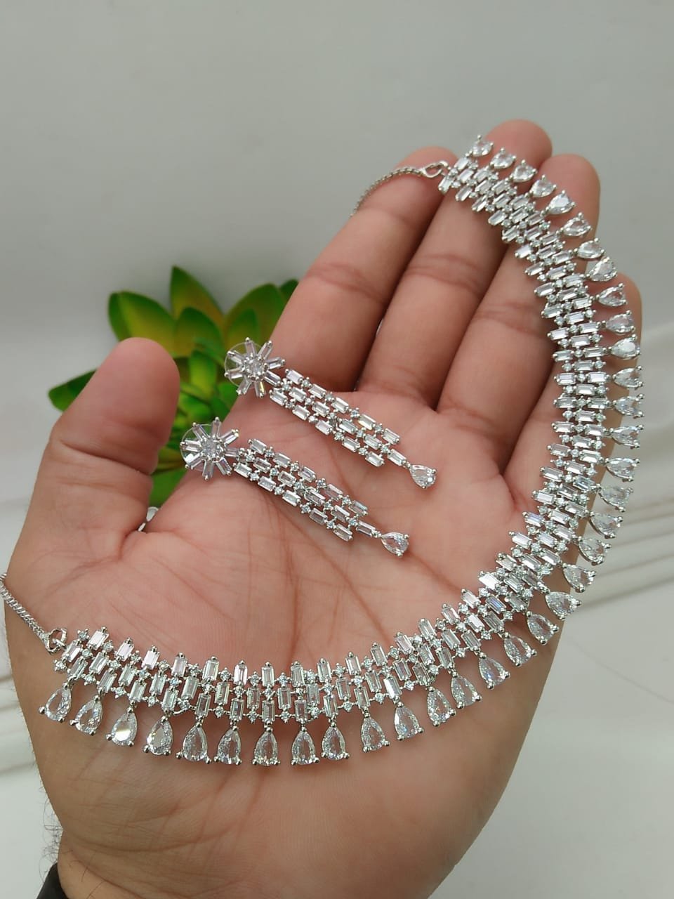 Elevate your style with the exquisite Sparkling Cubic Zircon Necklace Set with Earrings from LC Jewelz. This stunning set is designed to bring timeless elegance to every occasion. Crafted with precision, the dazzling cubic zircon stones, also known as American Diamonds, emit a captivating shine that lasts a lifetime.