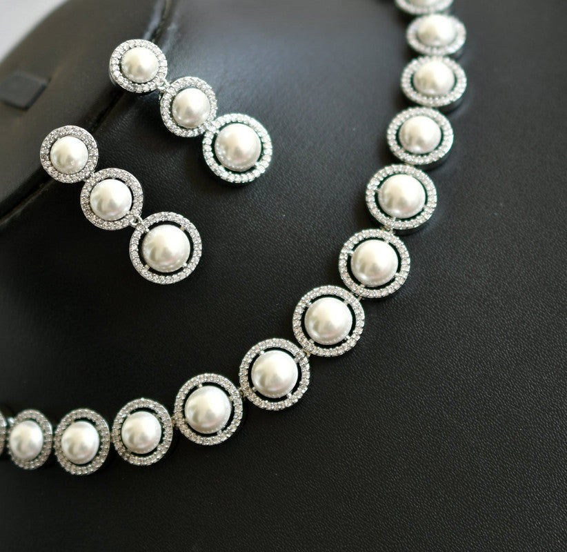 Elevate your style with the exquisite Sparkling Cubic Zircon Necklace Set with Earrings from LC Jewelz. This stunning set is designed to bring timeless elegance to every occasion. Crafted with precision, the dazzling cubic zircon stones, also known as American Diamonds, emit a captivating shine that lasts a lifetime.