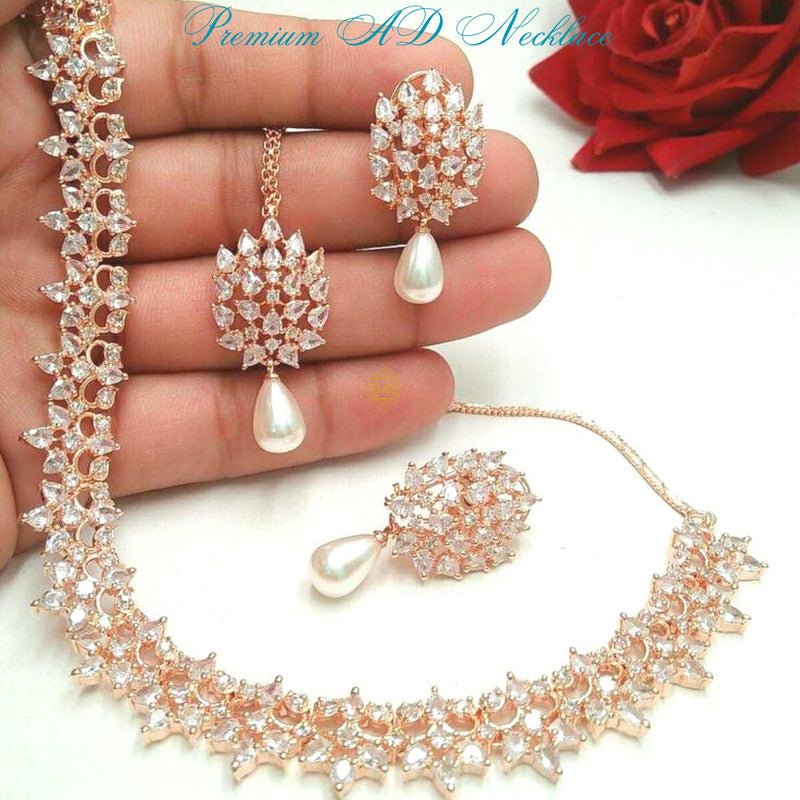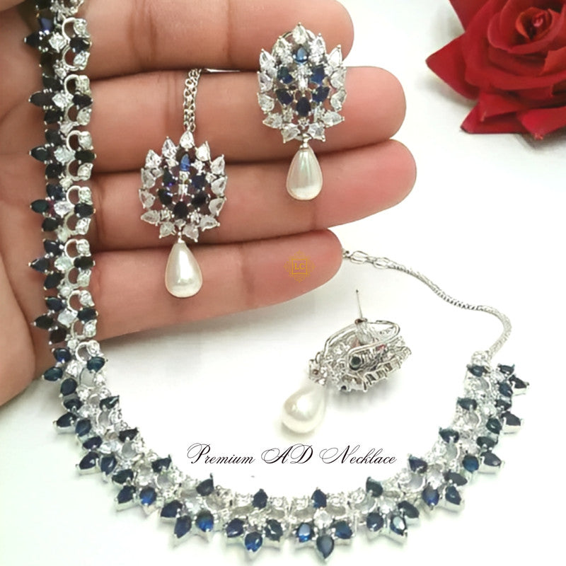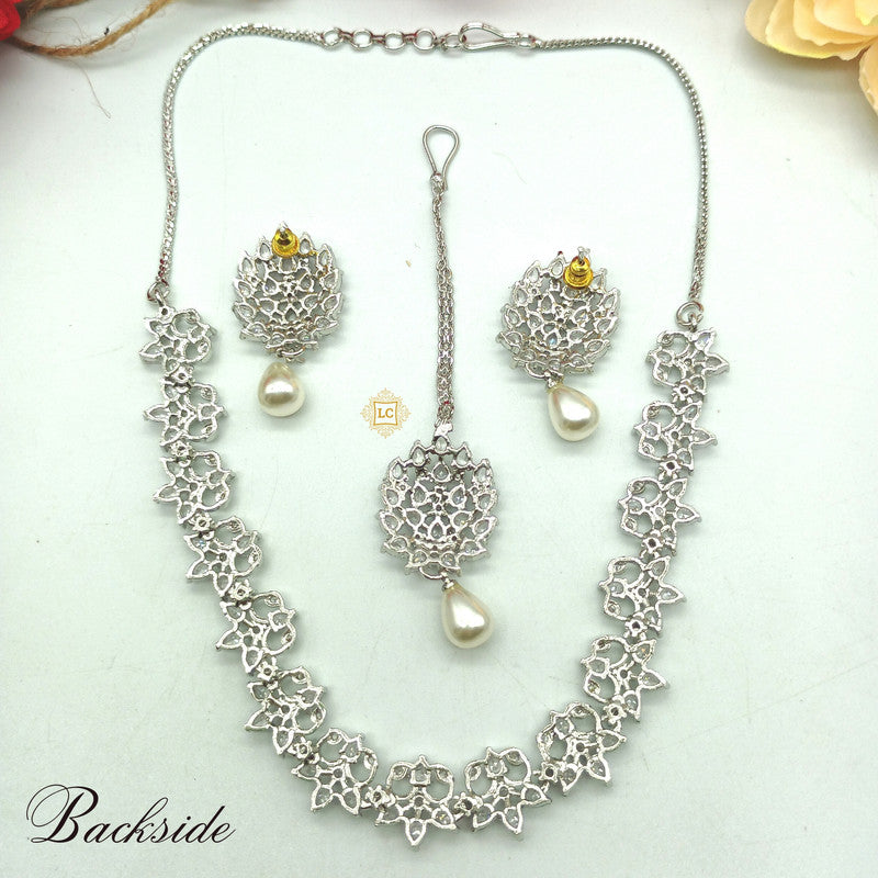 Elevate your style with the exquisite Sparkling Cubic Zircon Necklace Set with Earrings from LC Jewelz. This stunning set is designed to bring timeless elegance to every occasion. Crafted with precision, the dazzling cubic zircon stones, also known as American Diamonds, emit a captivating shine that lasts a lifetime.
