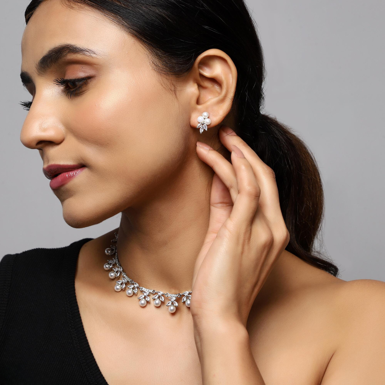 Make a lasting impression with this exquisite traditional jewellery. This item will increase your attractiveness and go nicely with your outfit. Get a stunning appearance overall by adding this necklace set to your lovely outfits.Put it on for important events to make a fashion statement. This necklace set is the ideal fusion of conventional and modern style. Appropriate for all formal situations Jewelery improves the look of every ensemble. A dazzling collection would be incomplete without complementary jewellery. A lady is fully accessorised with complementary jewels.