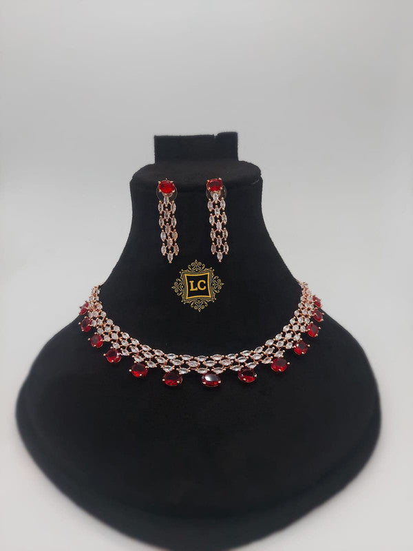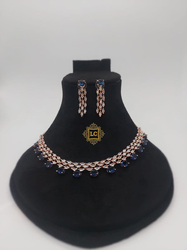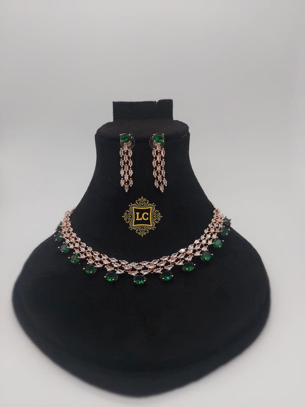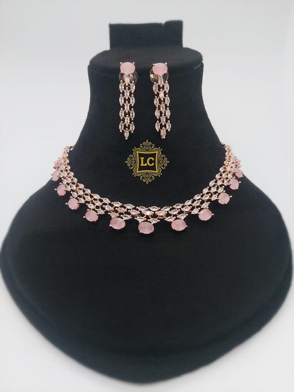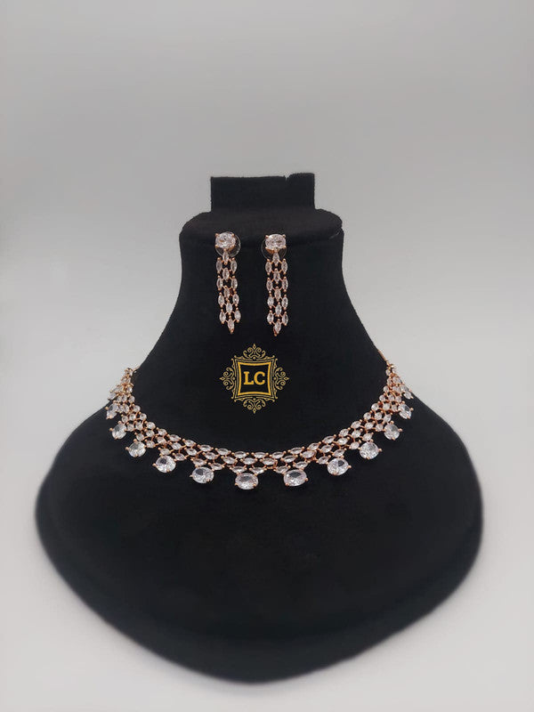 American Diamond Rose Gold Jewellery Set With Earrings.