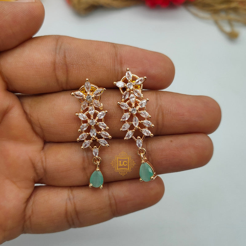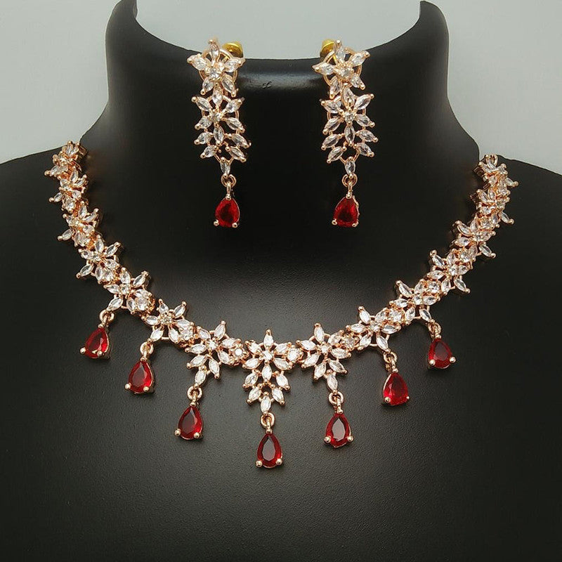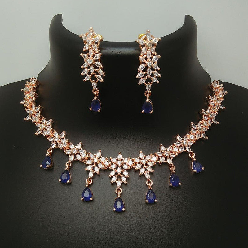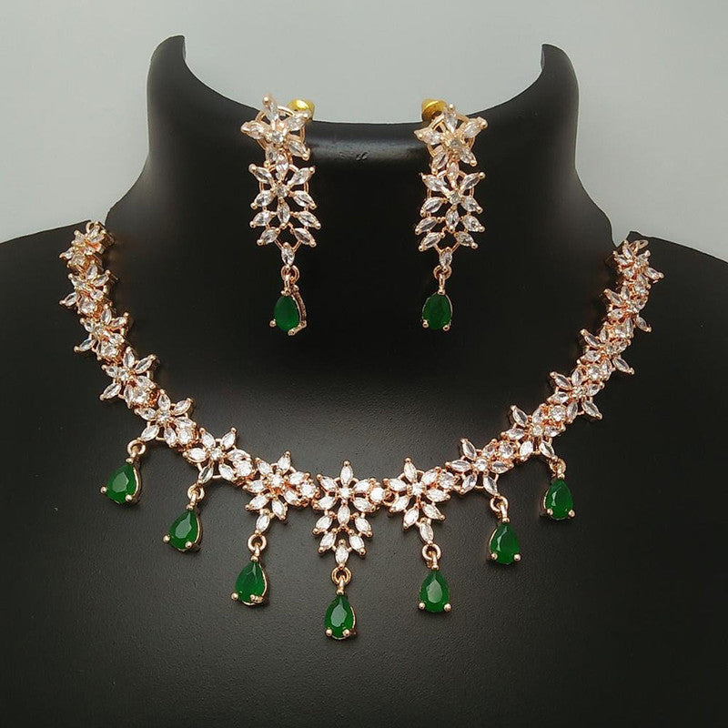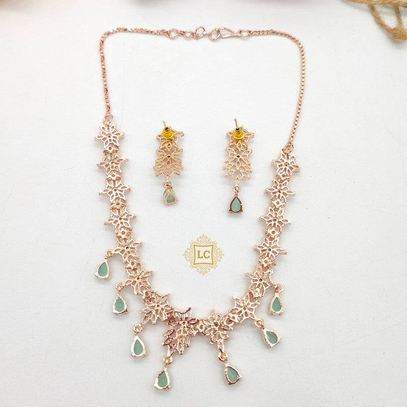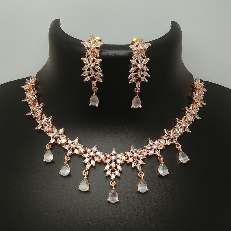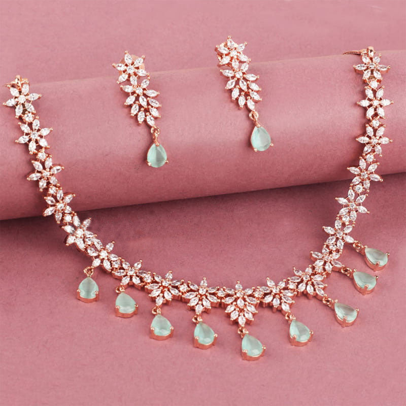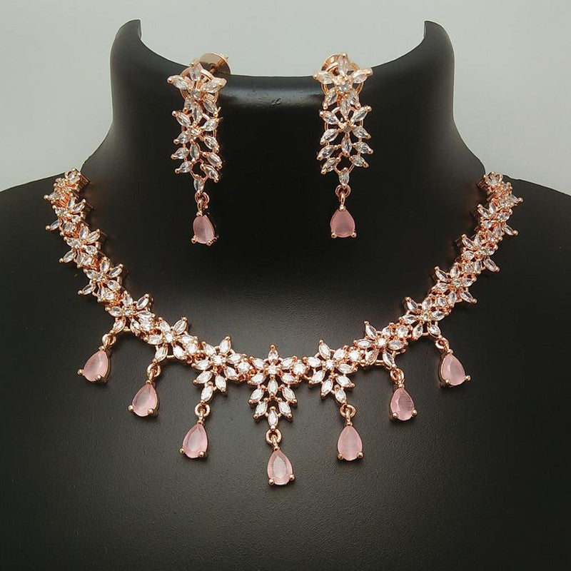 American Diamond Rose Gold Jewellery Set With Earrings.