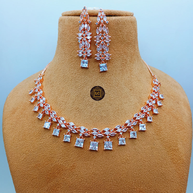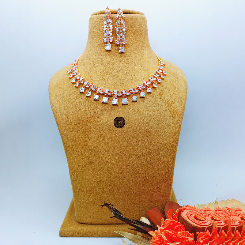 American Diamond Rose Gold Jewellery Set With Earrings.