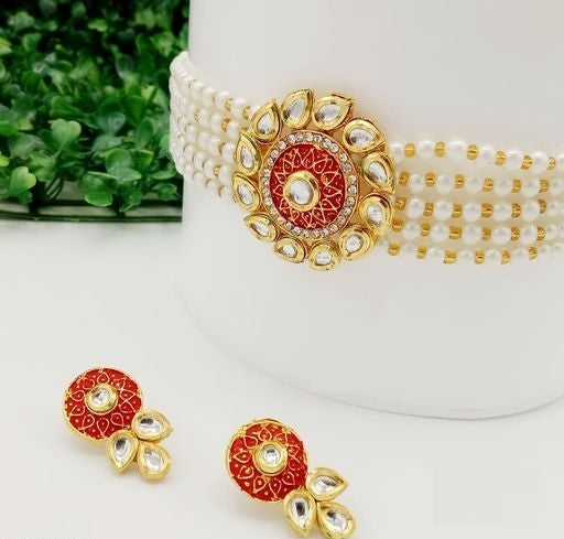 Discover the exquisite Kundan and Pearls Choker Necklace Set with matching earrings, a perfect blend of beauty and elegance. Elevate your style with this stunning jewelry set, specially designed for women who appreciate timeless beauty. Available in an array of color options to suit your preferences. The drawstring adjustable clasp ensures a comfortable and secure fit, while the drop earrings type adds a touch of sophistication to your look. Surprise your wife with this marvelous jewelry set, a thoughtful and stylish gift from LC Jewelz clearance sale.