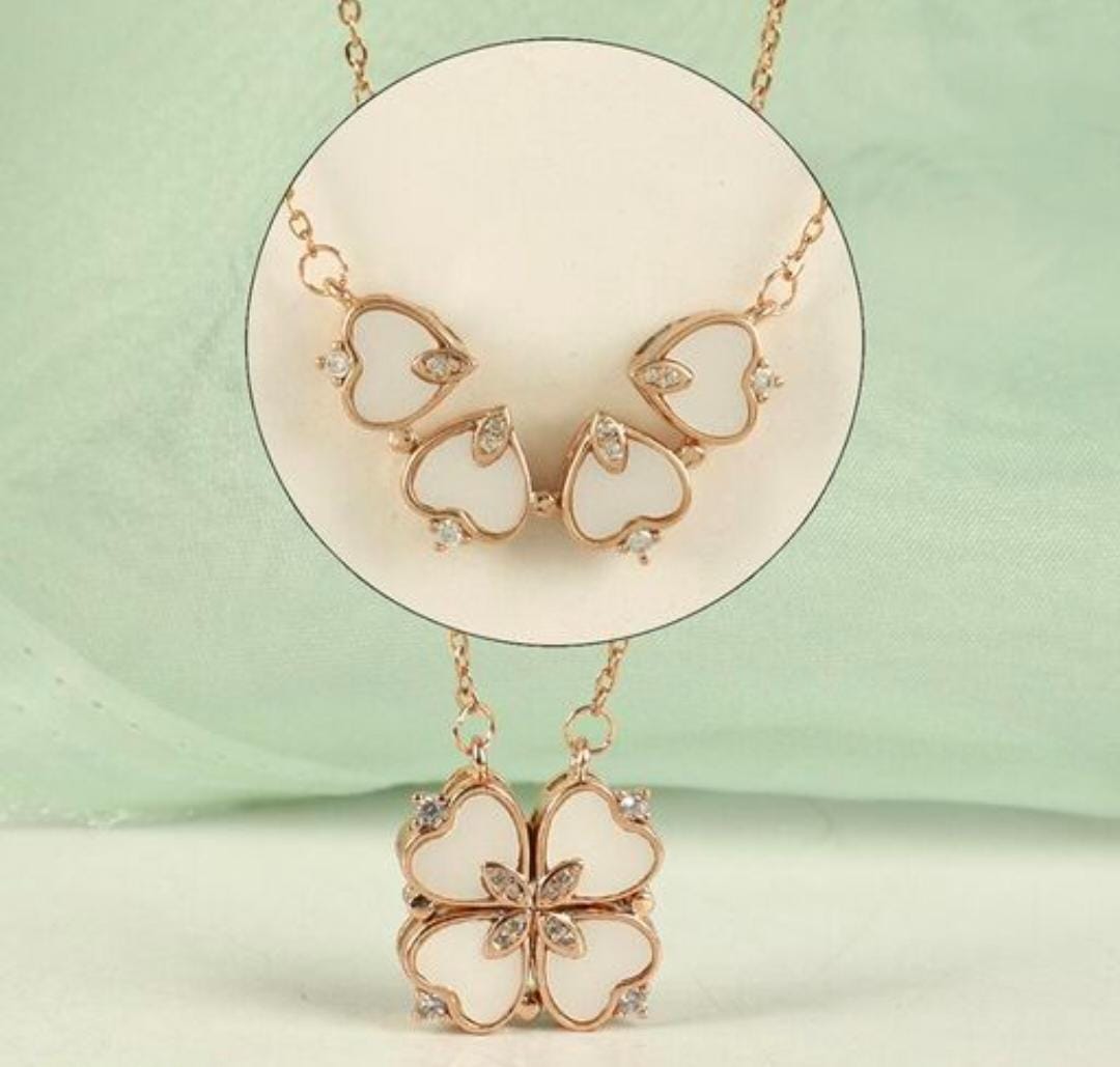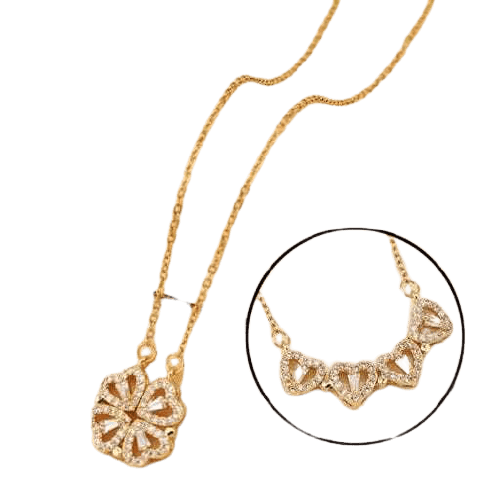 Heart-Shaped  Chain with Four Leaf Clover e Magnetic Heart Pendant on Both Sides Women's Stainless Steel Chain. This pendant will not fade. It can be worn in four ways. Open heart design or closed leaf design. Material stainless steel. The color does not fade like other alloy jewelry. Made of stainless steel, this pendant for women has excellent color retention. Inspired by the four heart clover, each heart has a different meaning. The four hearts represent faith, love, hope, and good luck. Heart-shaped outline, flowing lines with the sweet pulse of love. Complete your beautiful looks with this chain and get an overall gorgeous appearance. Wear it on special occasions and everyone with your looks. This Heart Shaped Chain is a perfect combination of traditional & contemporary design. Suitable for all Kinds of Dressy Occasions. Jewelry adds Lavishing look to any clothing. Any fabulous outfit is incomplete without matching jewelry. A woman is completely dressed with wearing matching jewelry. Make your moment memorable with this High-Quality traditional jewelry. This Piece of Jewellery will enhance your beauty and compliment your dress. Ideal Valentine, Birthday, Anniversary gift your loved ones. Women love jewelry; specially traditional jewelry adore women. They wear it on different occasions. They have special importance on ring ceremony, wedding and festive time.
