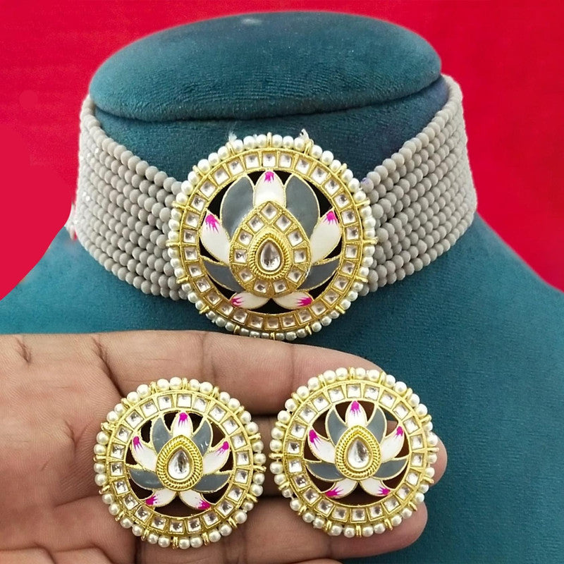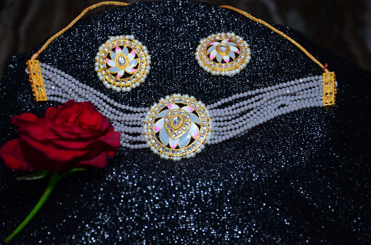 Discover the beauty of our Meenakari and Beads Choker Necklace Set with matching earrings - a perfect blend of elegance and tradition! This stunning jewelry set is gold plated and available in a variety of delightful colors to suit your style. The drawstring adjustable clasp ensures a comfortable fit, and the drop earrings style adds a touch of sophistication. Ideal for women, this choker set makes the perfect gift for your beloved wife. Hurry and grab this limited offer from LC Jewelz Clearance Sale!