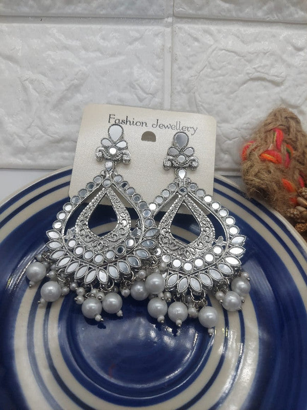 Exquisite Silver Oxidized Chandbali Earrings with Pearls